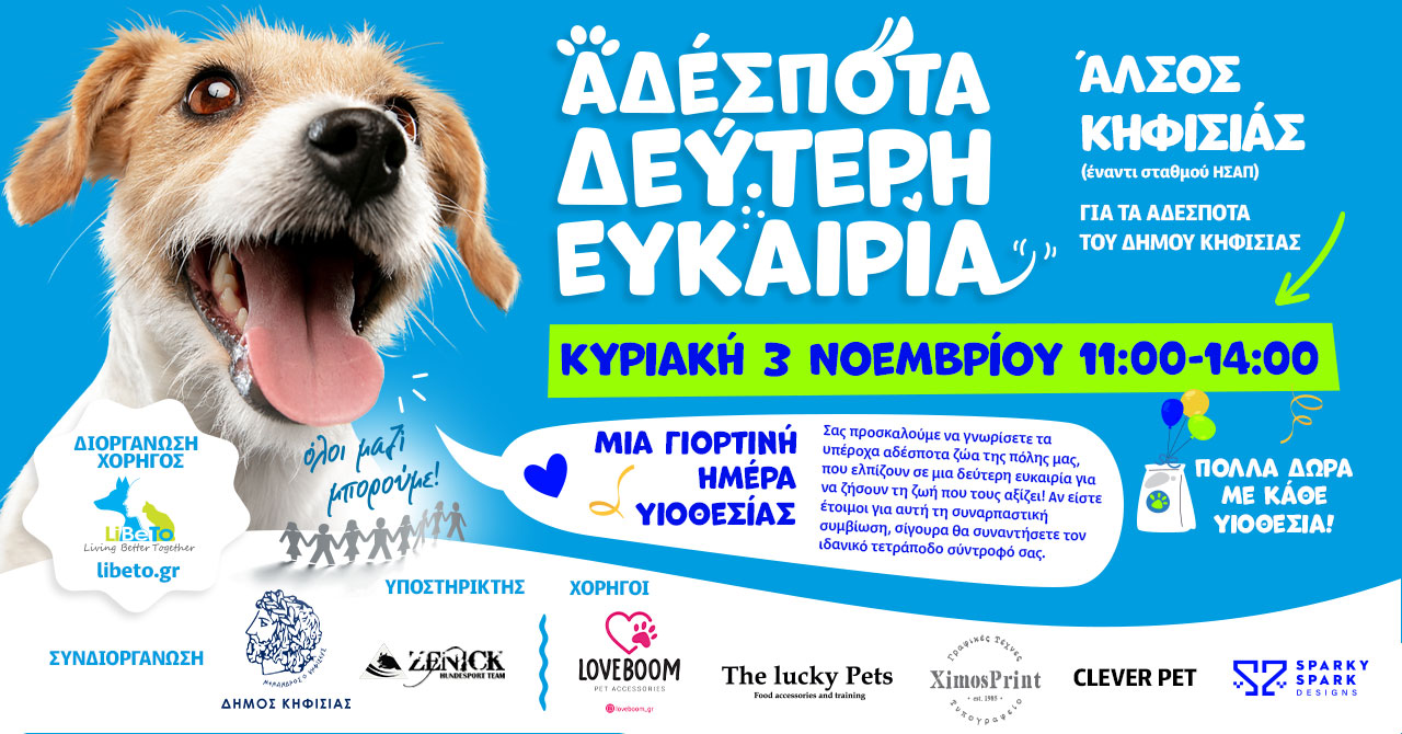 Η εκδήλωση εντάσσεται στο πλαίσιο της Φιλοζωικής Εθελοντικής Δράσης Κοινωνικής Ωφέλειας «Αδέσποτα Δεύτερη Ευκαιρία» της LiBeTo Κοιν.Σ.επ..